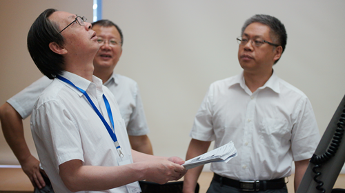在考察实验室过程中,韦一良书记随机抽查了三个教室的上课情况,进行了短暂的随堂听课;韦一良书记还就服装专业教室的使用情况与王永进执行院长进行了交流。