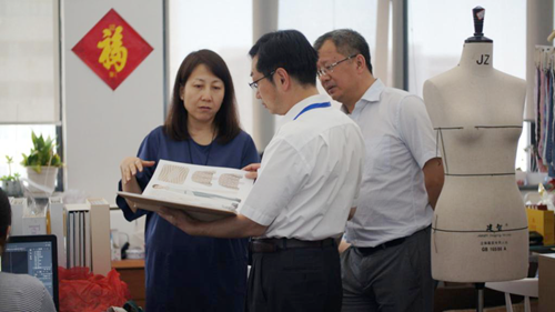 随后,邱高教授参观了学院校企合作工作室,观看了北服·南山服装研究所、北服雪莲服装研究所和北服高尔夫服装研究所,与相关负责人进行交流。